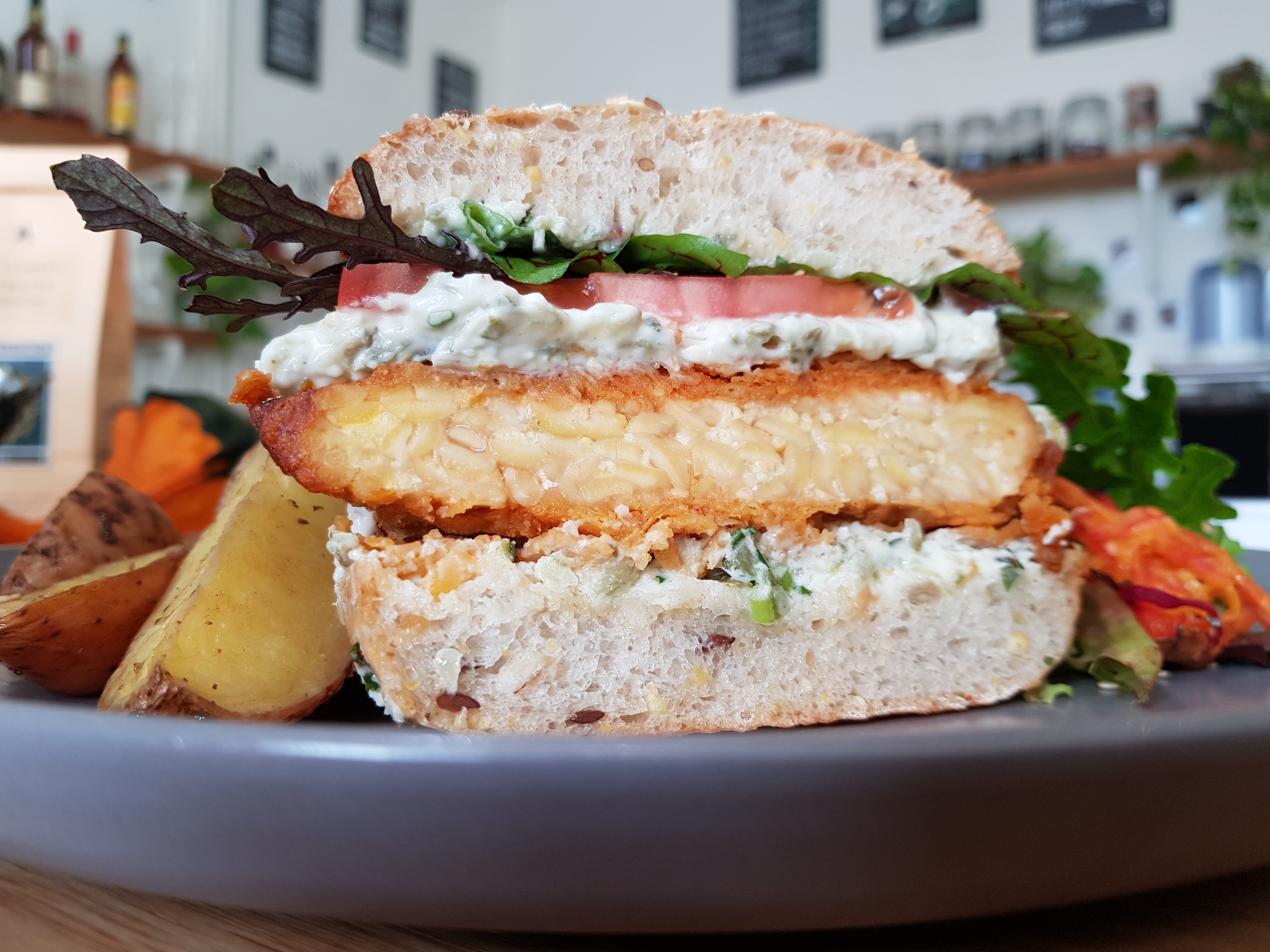 Venez découvrir le nouveau burger maison chez MU-Food: Crispy tempeh !!
